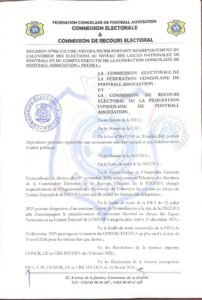 La Commission électorale et la Commission de recours électoral de la Fédération Congolaise de Football Association (FECOFA) ont rendu public le nouveau calendrier des élections au sein des ligues nationales ainsi que pour le comité exécutif de l’instance dirigeante du football congolais.