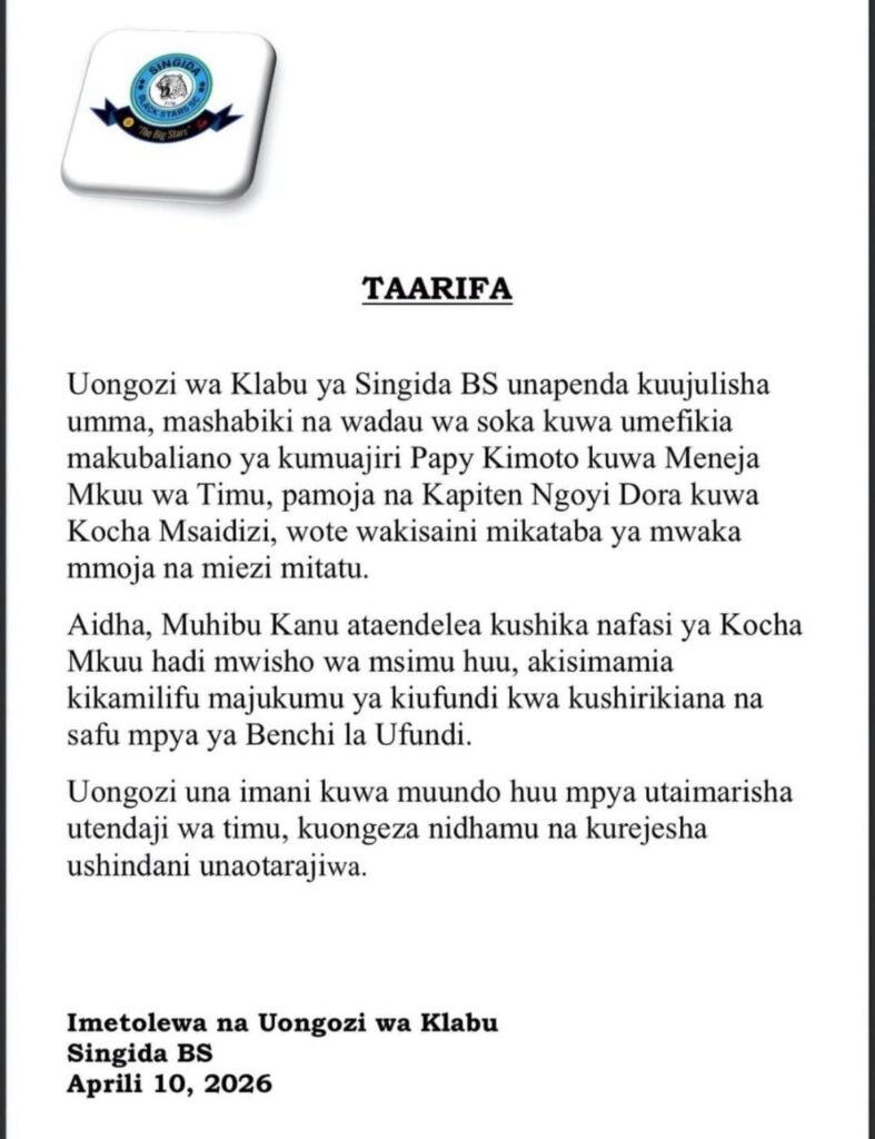 Le technicien congolais Papy Kimoto a été nommé directeur général de Singida BS pour une durée d’un an et trois mois. L’annonce a été officialisée à travers un communiqué rendu public par le club tanzanien ce vendredi 10 avril 2026.